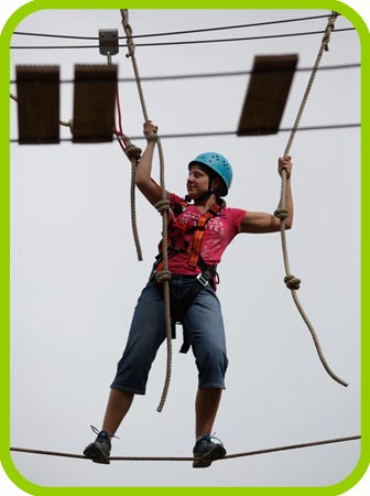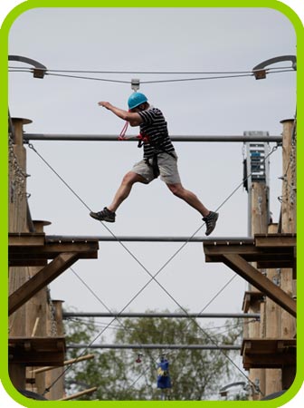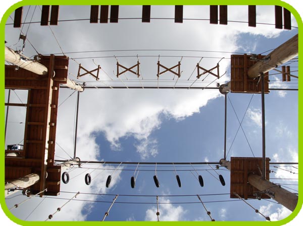 » Panoramaparcours »» Unkomplizierte Nutzung für Jedermann (ab 120 cm Körpergröße) »» Einklinken und los »» 14 Stationen auf 2 Ebenen (5 m / 9 m) »» Fortlaufendes Sicherungssystem mit Betreuung »» Insgesamt 130 Meter Seilrutsche in den Waldbereich und zurück.