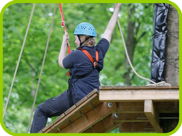 » Teamtraining im Wald »» Erlebnispädagogik, Teambuilding, Naturchallenge »» Niedrige Teamstationen mit 4 Elementen zur Übung von Geschicklichkeit, Gleichgewicht, Vertrauen, gemeinsamer Problemlösung, Strategie »» Hohe Teamstationen mit 4 Elementen in 8 m Höhe mit Top-Rope-Sicherung zur Übung von Mut und Selbstvertrauen, Übernahme von Verantwortung, Vertrauen in Andere, Grenzerfahrungen.